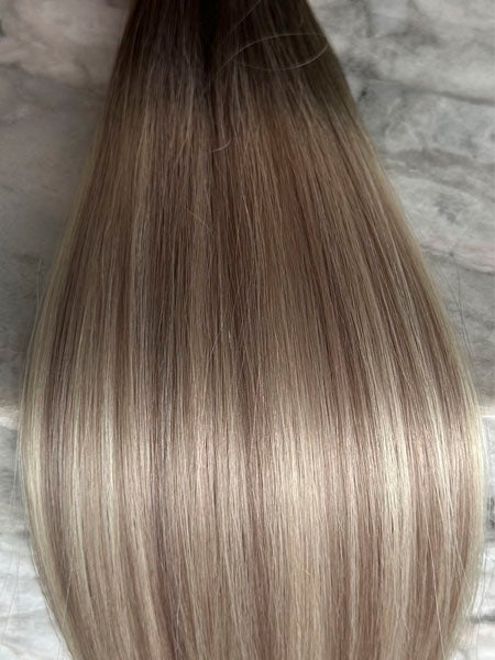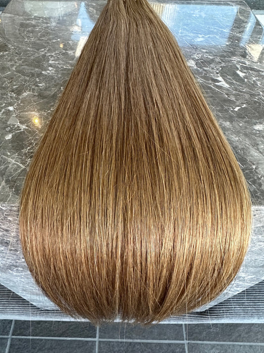 Genius weft, kan leveres i tre længder 45 cm, 55 cm og 75 cm. Vores genius wefts er 0,1 millimeter og hermed verdens tyndeste trense. Hair extensions i bedste kvalitet. Dine kunder vil takke dig for den usynlige installation, disse genius trenser skaber.